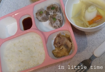 今日は、豚汁・しゅうまい(冷凍^^;)・豚肉と油揚げのさっと煮でした。